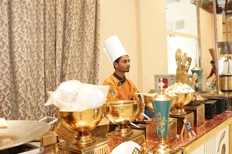 Experience interactive dining with live cooking stations, BBQ setups, chaat stalls, and more.